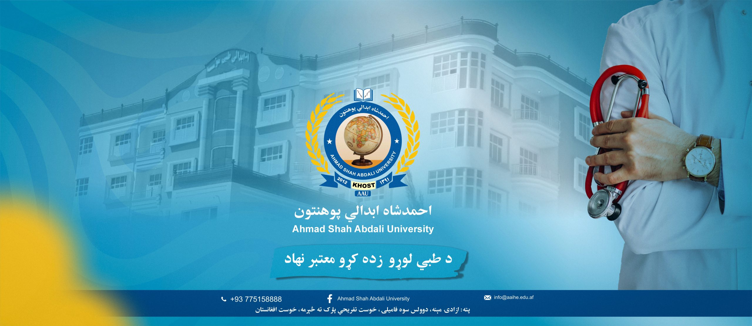 د طبي زده کړو معتبر علمي مرکز په یو نظر کې احمد شاه ابدالي پوهنتون احمد شاه ابدالي پوهنتون په یو نظر کې